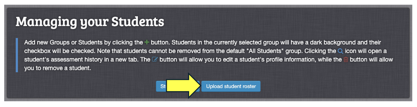 Next, select the blue "Upload Student Roster" button. (pictured below)