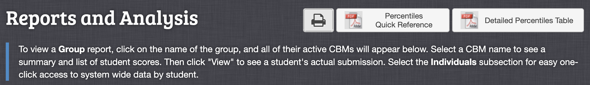 Individual student reports contain all of the tests a student has taken, even benchmark tests. Progress monitoring tests list the test name followed by a number _#), whereas Benchmatk tests end with a season (Fall, Winter, Spring). To see a comprehensive view of students' scores, graphs, and their actual tests, this is the report to select.