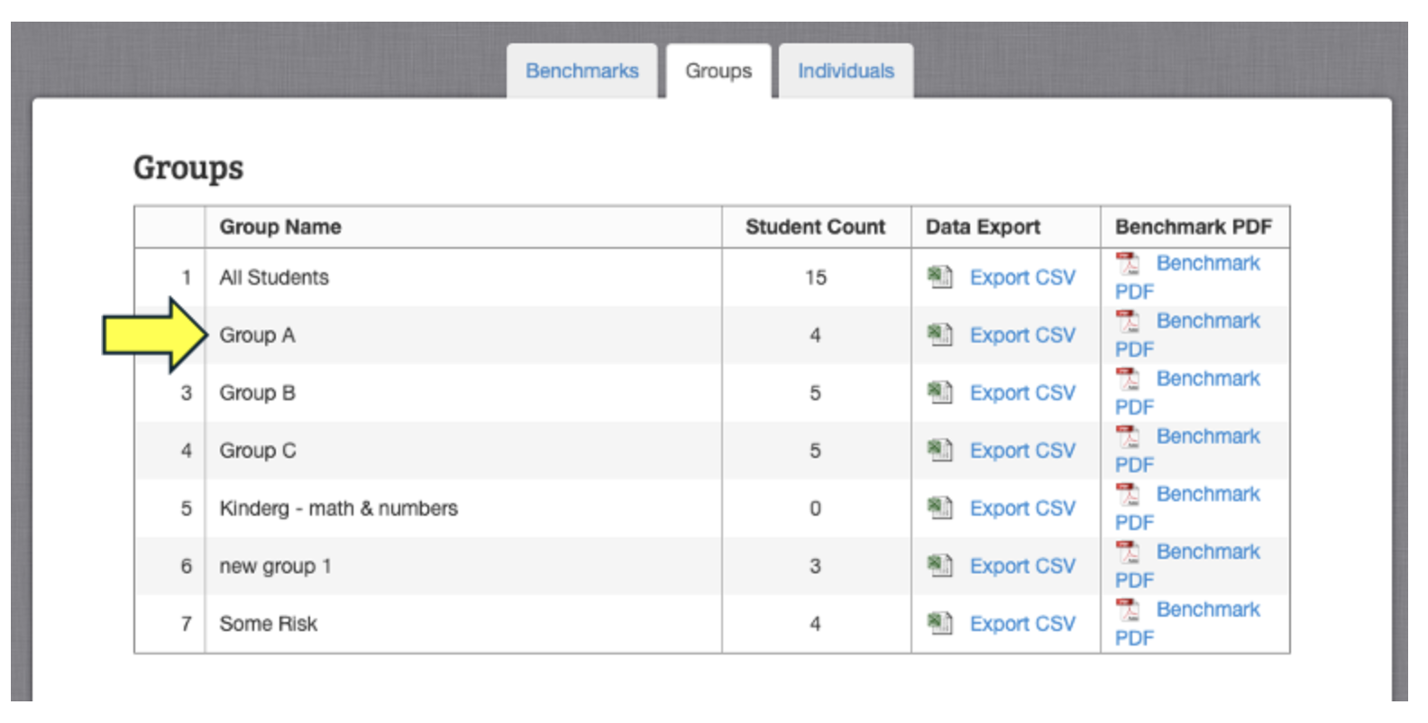 Click directly on the "Group Name" that you would like to view the information for.