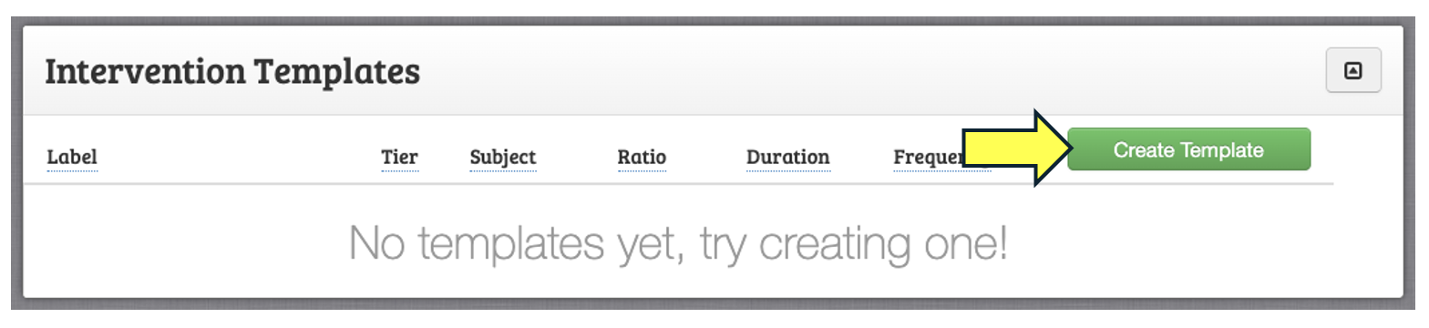 If no templates exist, click on the "Create Template" button to open a start a new intervention.
