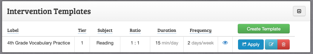 When finished you will now see the intervention in your "Intervention Templates" list.