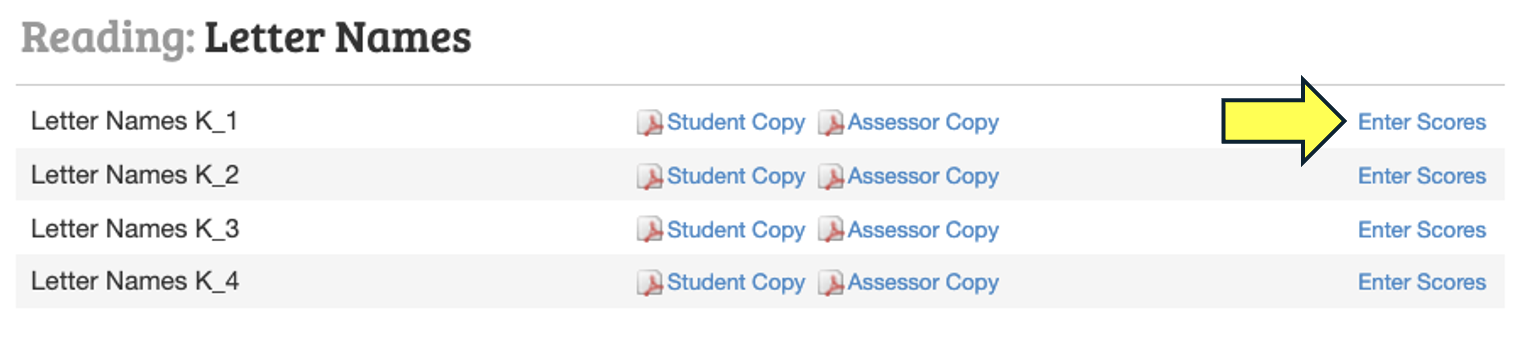 Once selected, scroll down to the measure you'd like to administer and click on "Enter Scores".