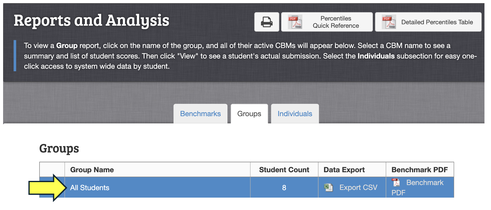 Next, select the "Groups" tab and then click directly on the name "All Students".